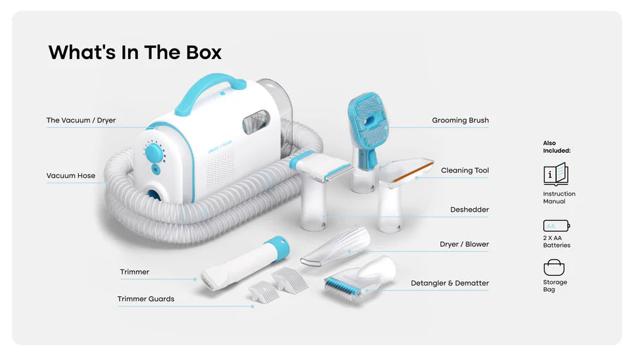 This 7-in-1 marvel redefines pet care, offering seamless brushing, detangling, deshedding, trimming, cleaning, drying, and vacuuming – all without the mess. Engineered for tranquility, its silent operation ensures a calm grooming experience for your beloved pets, leaving them looking their best and your space impeccably clean.